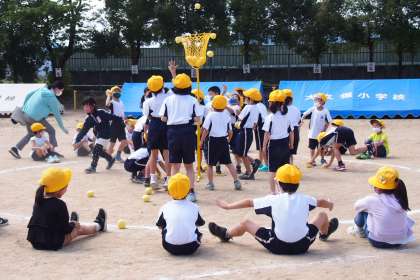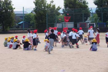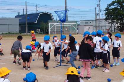 今日も、50メートル走の並び方と、玉入れの練習をしました。