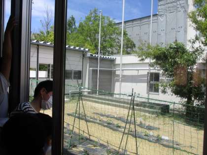 5月13日(木) 2年生 ネット張り 公開日 2021/05/13 更新日 2021/05/13 2023年度 2年生 きゅうりの苗が伸びてきたため、用務員の寺森さんがネットを張ってくださいました。 ネットを見て「寺森さんありがとうございます。」と自分から言う人がたくさんいました。これからの生長が楽しみですね。