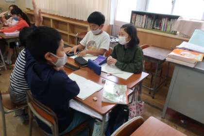 5月13日(木) 3年生「もっと知りたい、友だちのこと」 公開日 2021/05/13 更新日 2021/05/13 2023年度 3年生 国語科では、友だちの話を聞き、話題に沿った質問をして、もっと友だちの話をよく聞く学習をしました。「友だちと同じことを質問しないように、みんなの話をよく聞きたいな」と、真剣に話を聞いていました。