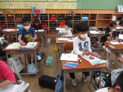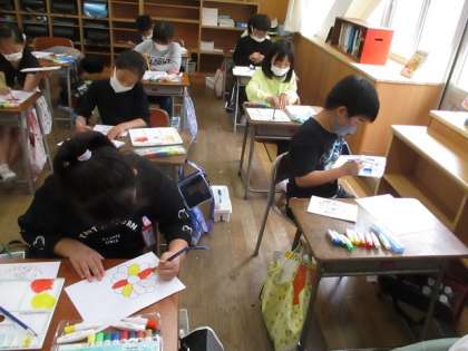 子供たちが思い思いに色を塗り、完成させることができました。