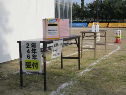 1年・3年・5年保護者専用の受付場所は、間隔をあけて設けてあります。