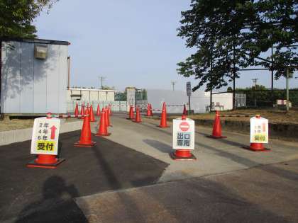 【写真上】入口と出口を分けています。左右が入口、中央が出口です。