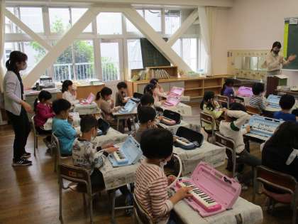 鍵盤ハーモニカを練習しています。