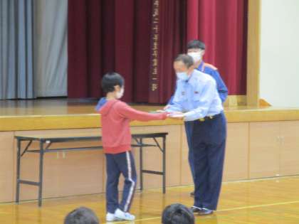 大沢野方面分団長様、大沢野消防署様にお越しいただき、BFCバッジ授与式を行い、BFCの仲間入りをしました。