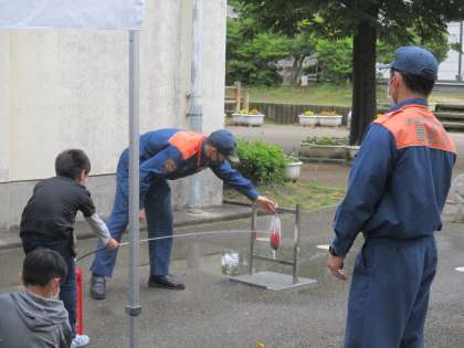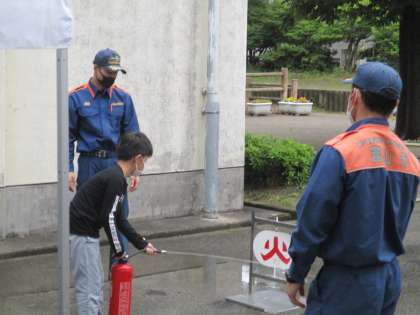 消火器の操作を体験しました。