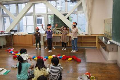 「わあ、きれいだな。」「たくさん花があるよ。」など、自分たちで考えた台詞を上手く表現していました。