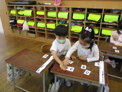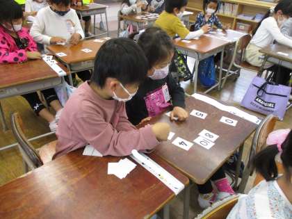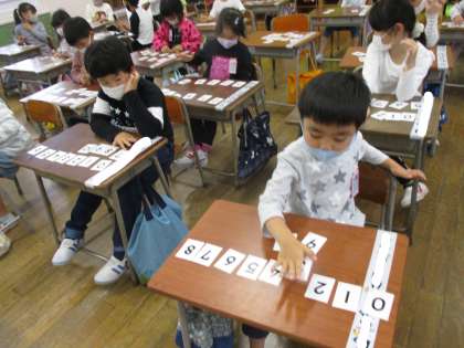 0から10のカードを使って、小さい順に並べたり、大きい順に並べたりしました。