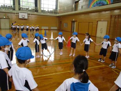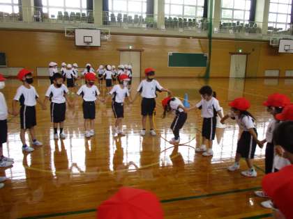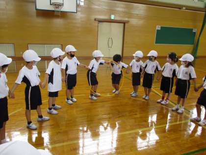 フラフープをみんなでくぐったり、リレーをしたりしました。
