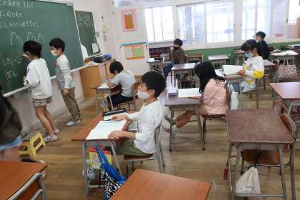 どちらの教室でも、はじめに自分で問題に取り組む時間をとり、問題の解き方を伝え合っています。最近は、「○○さんの考え方でもう一度問題を解いてみようかな」など、友だちの考えを参考にして問題の解き方を考えようとする子供たちの姿が見られます。子供たちが自分で考える時間を大切にしたいと思います。