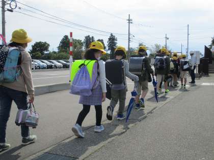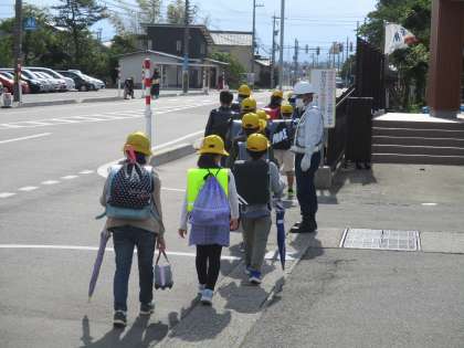 毎朝、地域の方や工事関係者の方が子供たちの安全を見守ってくださいます。