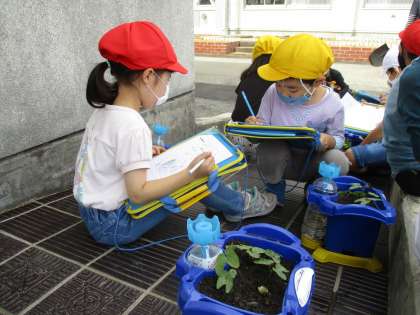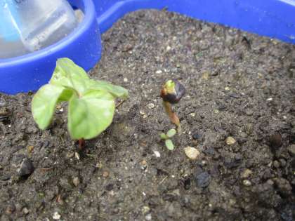 「芽がたくさん出ているよ。」「葉っぱが二つあるね。」と子供達はつぶやいていました。