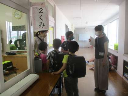 5月25日(火) 1年生 引き渡し訓練 公開日 2021/05/25 更新日 2021/05/25 2023年度 1年生 1年生教室での引き渡し訓練の様子です。 担任が保護者の役をして、実際にどのように帰るのか確認しました。
