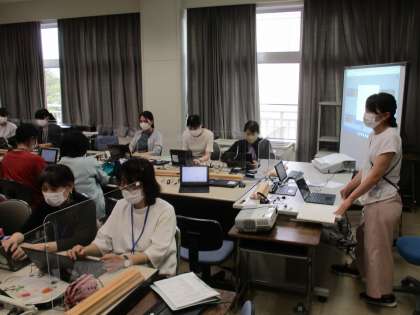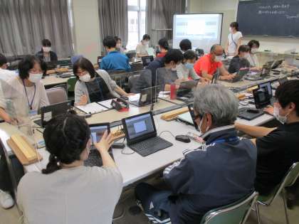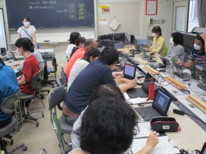写真は、課題の提出や返却等の操作方法を学んでいる昨日の研修会の様子です。