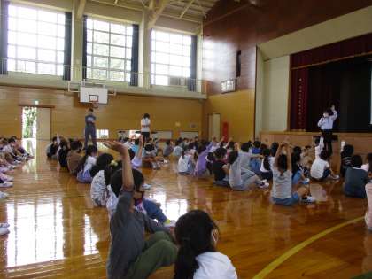 富山県防犯協会の方にきていただき、自分の身を守るために大切なことを教えていただきました。