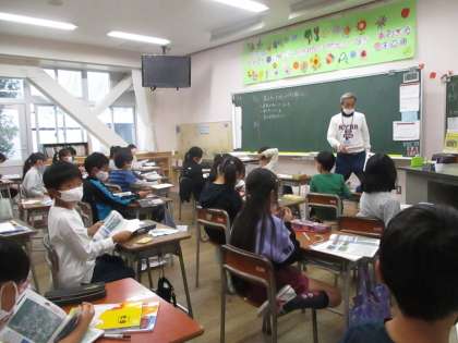 今日は、海沿いの地区の絵地図を見て、「工場や発電所がとても多い。何かを作る場所が多い地域だと思う。そんな地域なのに、学校があるのが不思議。みんな、どのように生活しているのだろう」「海沿いなのに、林があるよ。どんな様子なのかなあ」と、地図記号から、その地区の様子を子供なりの視点で読み取っている姿に感心しました。