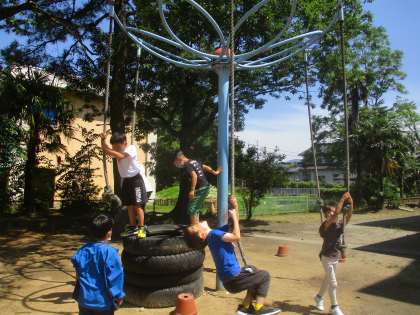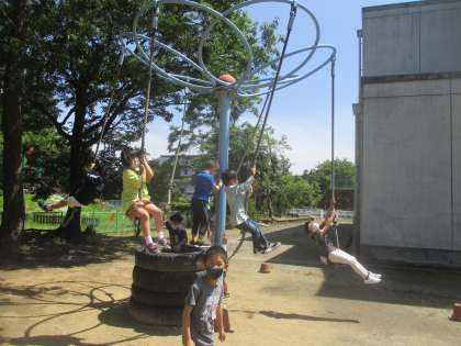 休み時間にわんぱく広場で遊びました。