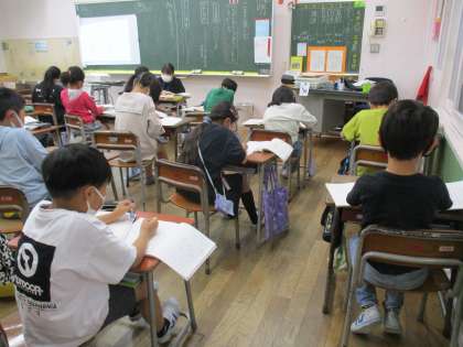 「こまを楽しむ」を読んで、一番遊んでみたいこまについて説明文を書いています。