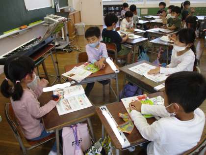 6月1日(火) 1年生 音楽 公開日 2021/06/01 更新日 2021/06/01 2023年度 1年生 カスタネットを使って音楽の授業をしました。 リズムに合わせて、グルーごとに練習をしています。