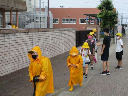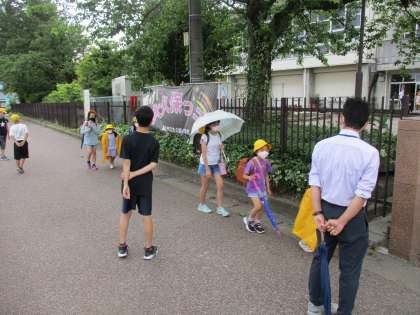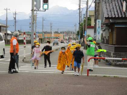 地域の方が、子供たちの安全を見守っておられます。