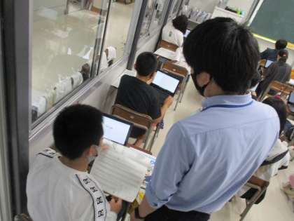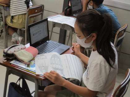 パソコンを使って、選んだ旅行先の情報を収集しています。