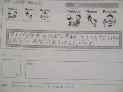 「3R」の行動目標を学習シートに記入しています。