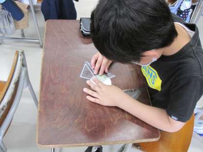 算数では、角度の学習をしています。三角定規2枚でたくさんの角度を見付けることができました。