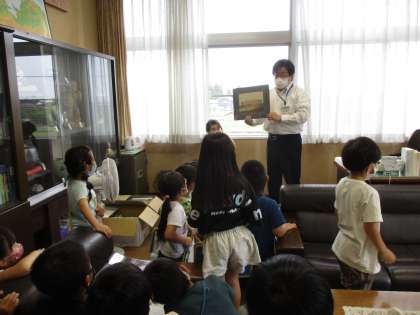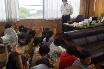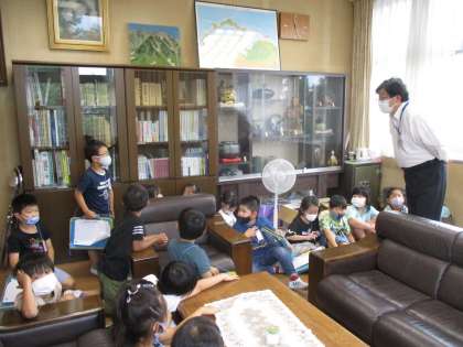 校長室では、校長先生に質問をしたり、話を聞いたりしました。
