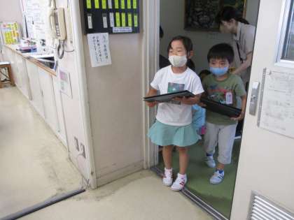 職員室に入るときは、一人一人が「失礼します。1年○組の〜です。見学に来ました。」と大きな声で言いました。