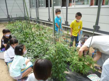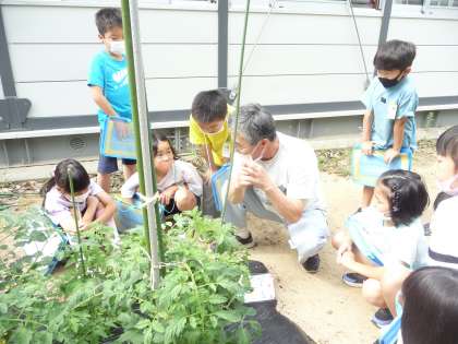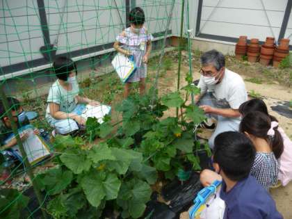 最初に、どの葉っぱをとったらいいのかを聞き、一緒にお世話をしました。