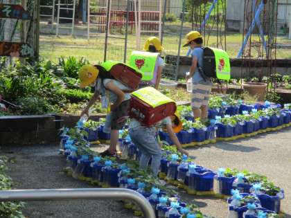 3年生が、係活動として、毎朝プランターに水やりをしています。