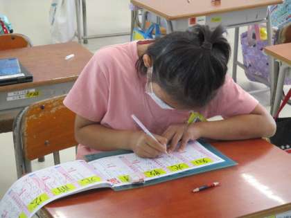 書いたら、先生に点検してもらいます。