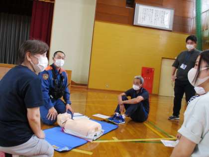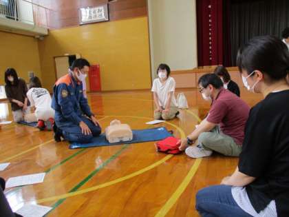 胸骨圧迫やAEDの使い方、意識が戻った後の対応の仕方を学びました。
