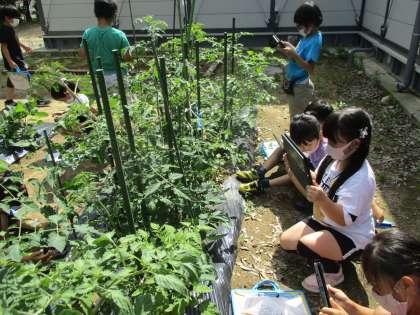 図工で野菜の絵を描くために、畑に写真を撮りに行きました。