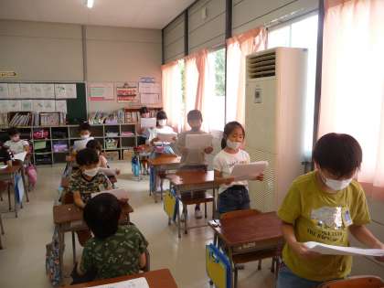 大きな声だけでなく、点や丸まで一息で読むことも練習しています。