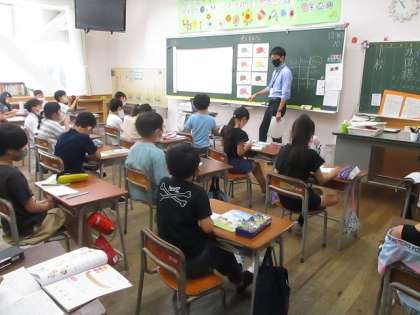 昨日、色の名前を英語で発音する練習しました。ビンゴカードに色の名前を書いてビンゴを狙う子供たちでした。中には英語やローマ字で色の名前を書くのを挑戦している子供もいました。週1回の外国語を楽しく勉強しています。