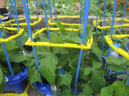 支柱を立てると、ぐんぐんつるが伸びてきました。