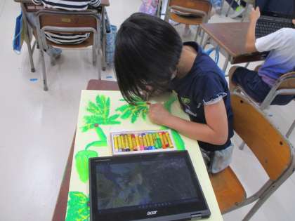 6月23日(水) 2年生 図画工作 公開日 2021/06/23 更新日 2021/06/23 2023年度 2年生 先週の続きで実を描いたり、葉っぱを描いたりしました。子供たちは、写真を見ながら葉脈まで細かく描きました。