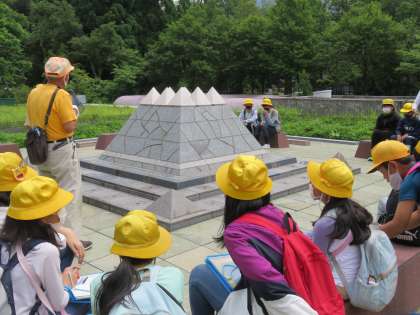 6月25日(金) 6年生 校外学習3 公開日 2021/06/25 更新日 2021/06/25 2023年度 6年生 まんだら遊苑ではボランティアの方に苑内のガイドをしていただきました。地獄から天界までの意味について、丁寧にわかりやすく解説していただきました。 昼食に向かう途中、ニホンカモシカを見かけました。貴重な存在であることを調べ学習で知っていた子供たちは、珍しそうに柵の中を見入っていました。