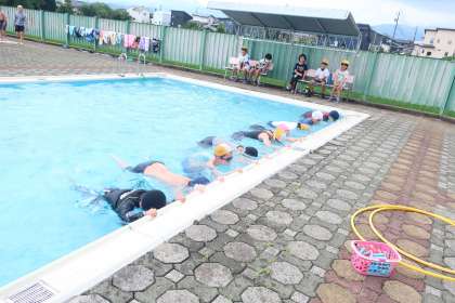 雨が降ることもなく、しっかり泳ぐことができました。「今日は、少し浮くことができた」「前より長く泳ぐことができた」など、できたことを振り返りました。一人一人の目当てが達成できるようにしたいと思います。