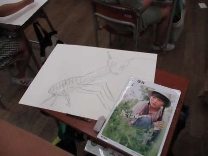 自分の好きな虫を画用紙いっぱいに描いたり、理科の教科書を見ながら細かい部分まで描いたりと真剣に取り組んでいました。