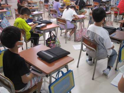 先日お知らせした通り、本日、全校児童がパソコンをランドセルに入れて持ち帰ります。