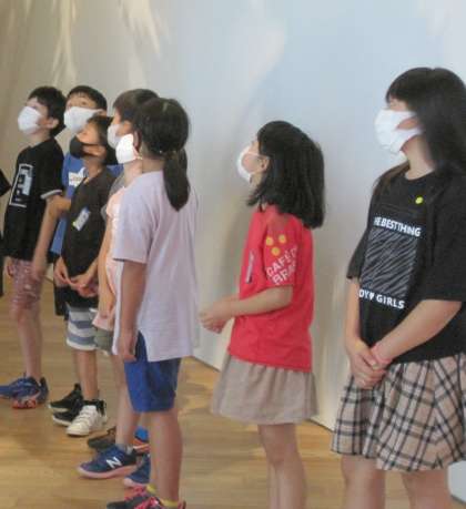 素敵なガラスの作品に、子供達は興味津々です。班ごとに場所や作品の説明をしてもらいました。