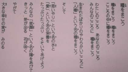 人権メッセージ『種をまこう』を全員で唱和しました。
