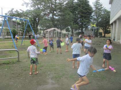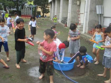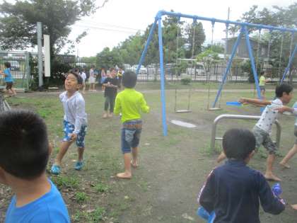 持ってきたペットボトルや水鉄砲で楽しく遊びました。
