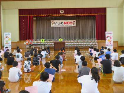 「人権の花運動」伝達式がありました。今日の学習を終えて、「いじめ」について考えたり、「人の生きる権利」を考え直したりする子供がいました。