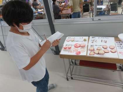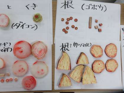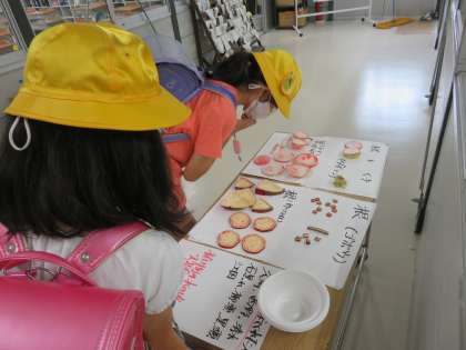 実験した野菜の前で、思わず立ち止まっています。中には休み時間を利用して、ノートにメモをとる子供もいました。