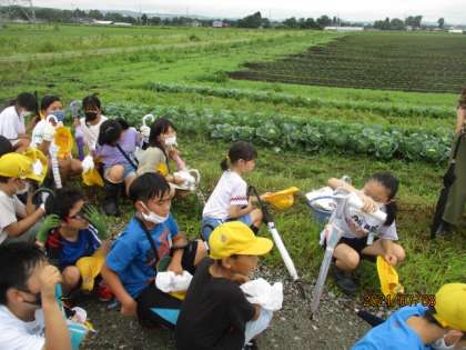 あいにくの空模様でしたが、塩にあるキャベツ畑に行って、キャベツの収穫体験をしてきました。子供たちは、おいしいキャベツをいただけるとあってうれしそうでした。