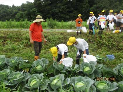 子供たちは、最初、「2個持っていく。」とか「3個持っていきたい。」などと言っていましたが、ずっしりと重たいキャベツを運んで帰校したときには、誰も複数個持って来られなかったことに不満を言っていませんでした。キャベツ1玉の重さをしっかりと感じられたことも大きな経験になったと思います。
