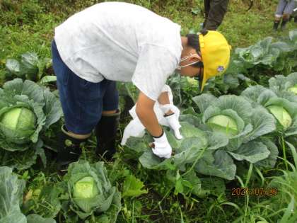 7月8日(木) 5年生 家庭科 キャベツの収穫(3)