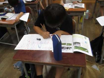 国語では「仕事のくふう、見つけたよ」という報告する文章づくりの勉強をしています。
